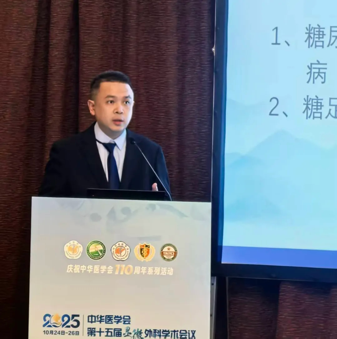 王跃东主治医师在再植再造分会场分享《关于非常规血运重建的无再植条件指体保指方法临床研究》,并代表何林主任在“慢性与特殊创面”专题中介绍《显微外科修复伴有重要组织外露的微小创面》,展现出我院青年医师扎实的临床功底与创新活力。